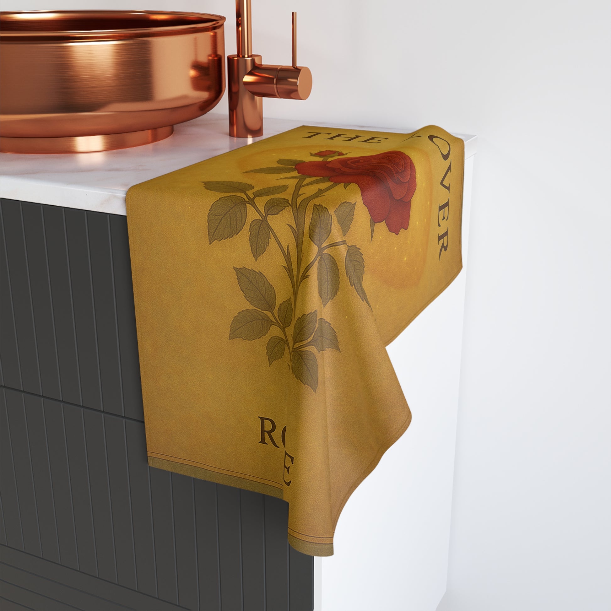 Soft, luminous, and romantic, The Lover - Rose towel embodies warmth and devotion. The vintage-inspired rose illustration blooms against a golden heart glow, blending classic symbolism with modern craftsmanship. Beautiful enough for display, practical enough for daily use, it’s an elegant balance of art and utility.